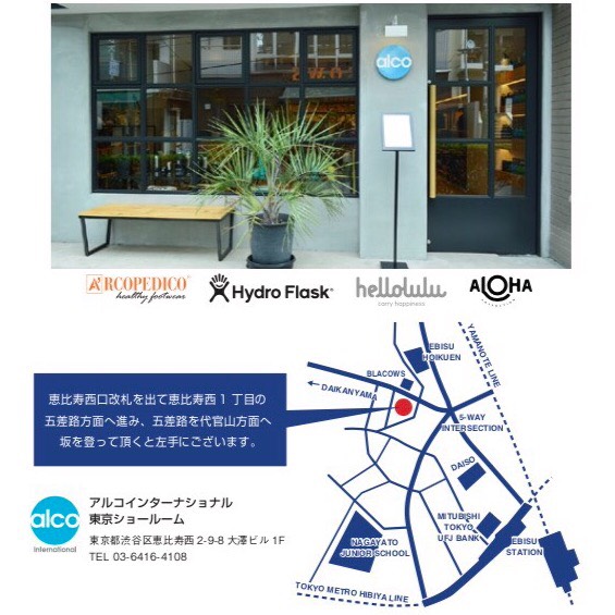 会場:alcoインターナショナルショールーム 〒150-0021 東京都渋谷区恵比寿西2-9-8-1F